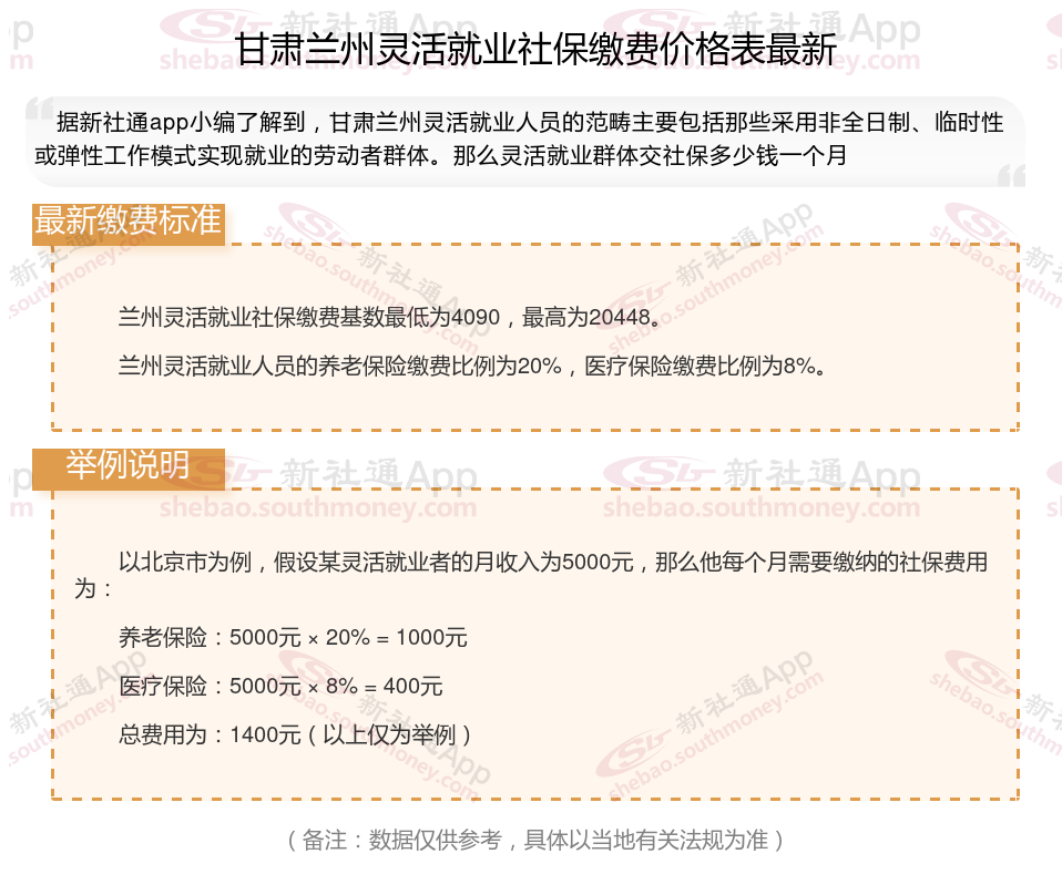 据新社通app数据显示,甘肃兰州灵活就业人员养老保险缴费基数2024-2025年最新标准如下: