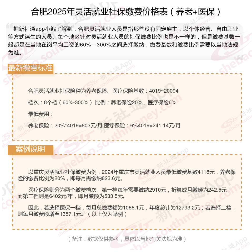合肥灵活就业人员社保每月交多少钱?根据新社通app-社保缴费查询工具提供的最新数据如下: