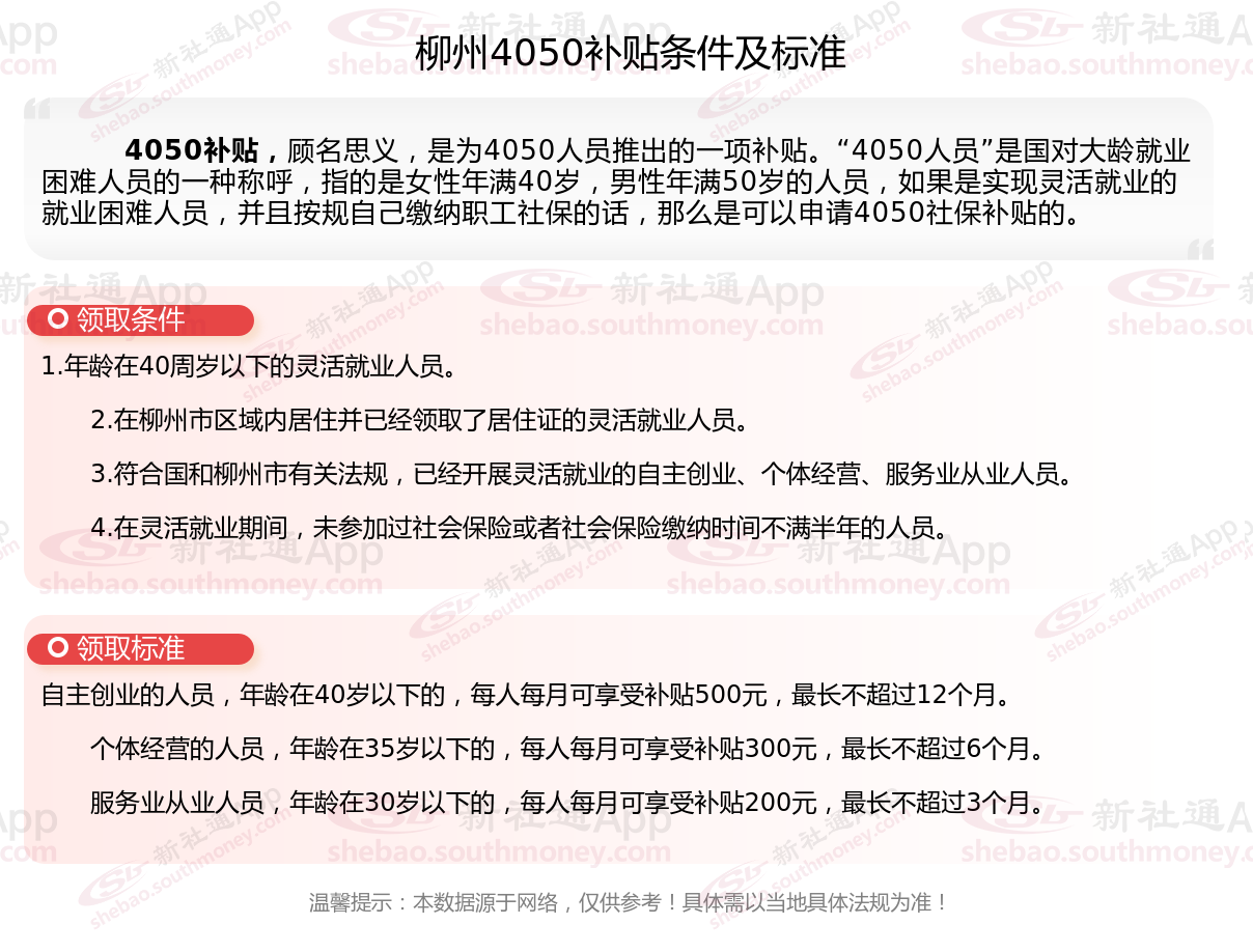 一、2025年柳州4050社保补贴标准,最新领取条件来了