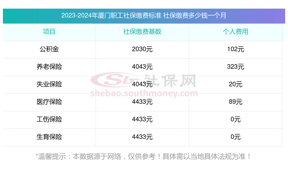 2025年社保缴费价目表,下面和新社通小编一起来了解下2024-2025年厦门最低配社保费用明细参考,新社通app-社保缴费查询工具提供的最新数据如下: