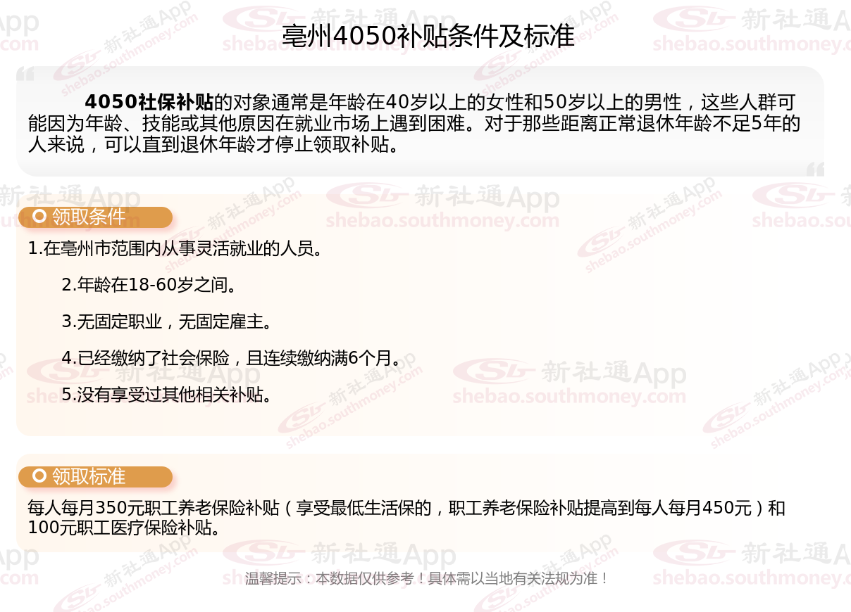 二、2025年亳州4050社保补贴多少钱?4050社保补贴领取条件什么?