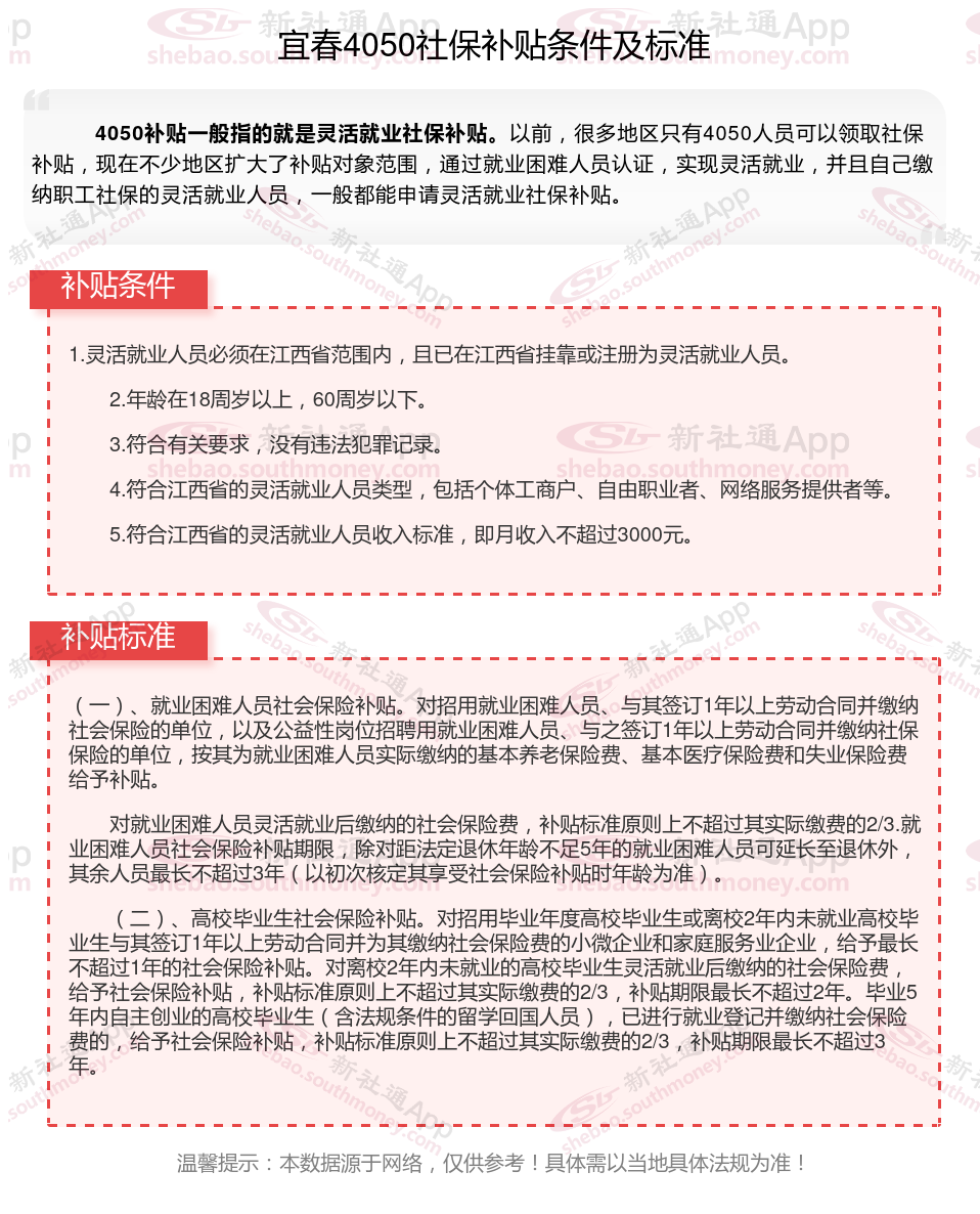 二、2025年宜春4050社保补贴标准及条件,最新如下: