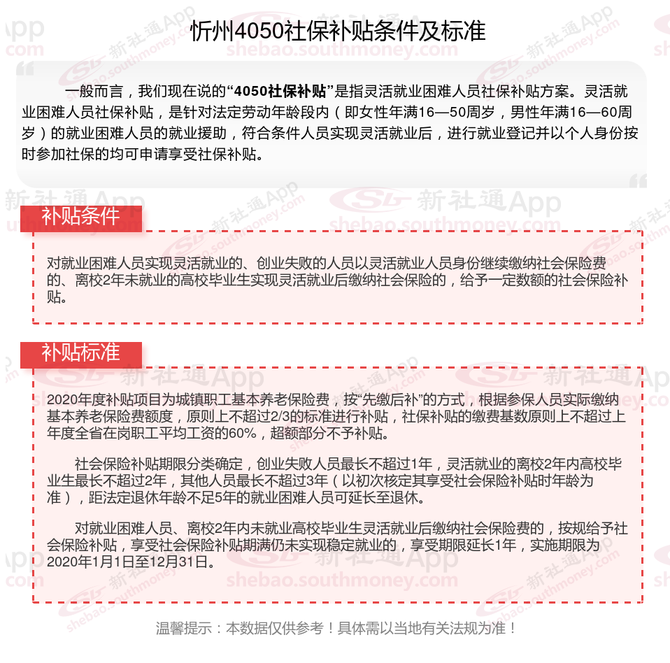 二2025年忻州灵活就业4050社保补贴标准及条件是什么