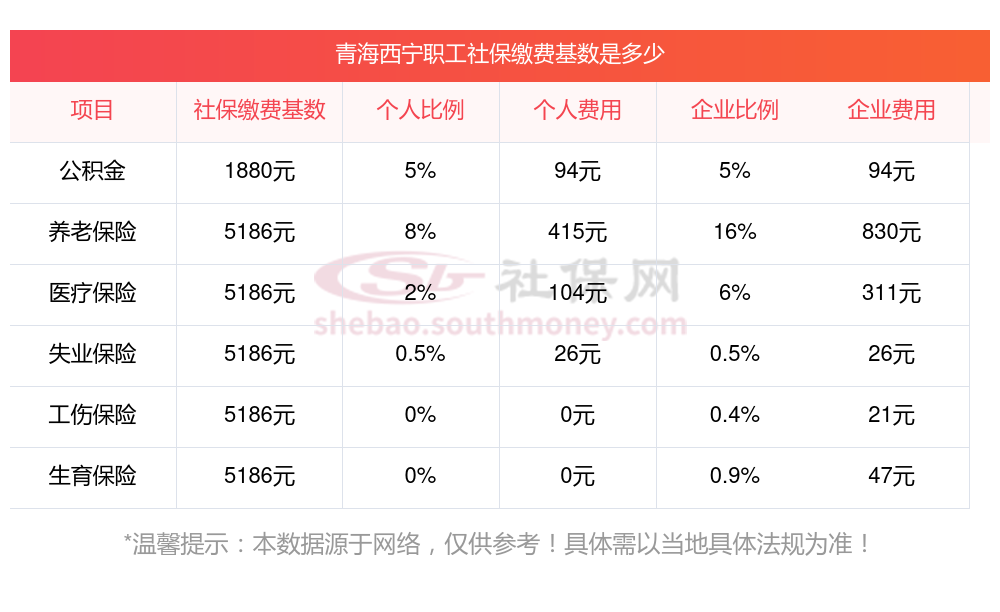 青海西宁2025年社保缴费个人和公司各承担多少?青海西宁五险一金每月最低交多少?下表是2025年青海西宁社保费用明细参考,新社通app-社保缴费查询工具提供的最新数据如下: