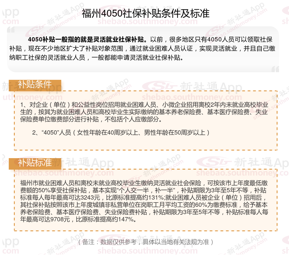 二、福州4050社保补贴标准及条件2025年,最新如下