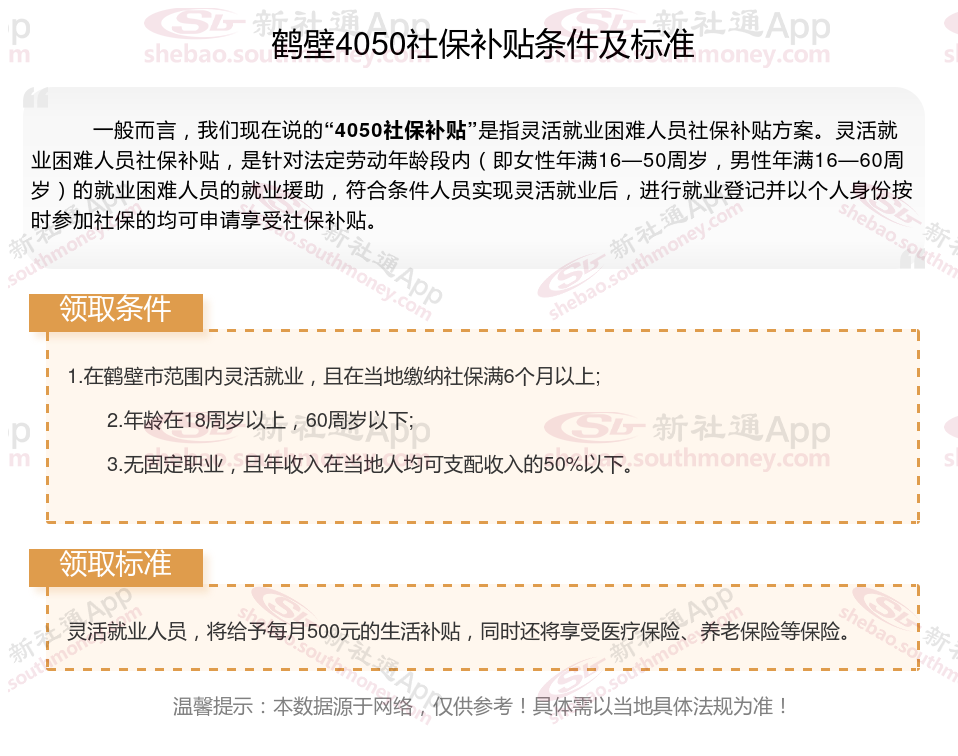 二、2025年鹤壁4050社保补贴标准及条件(4050社保补贴多少钱?)