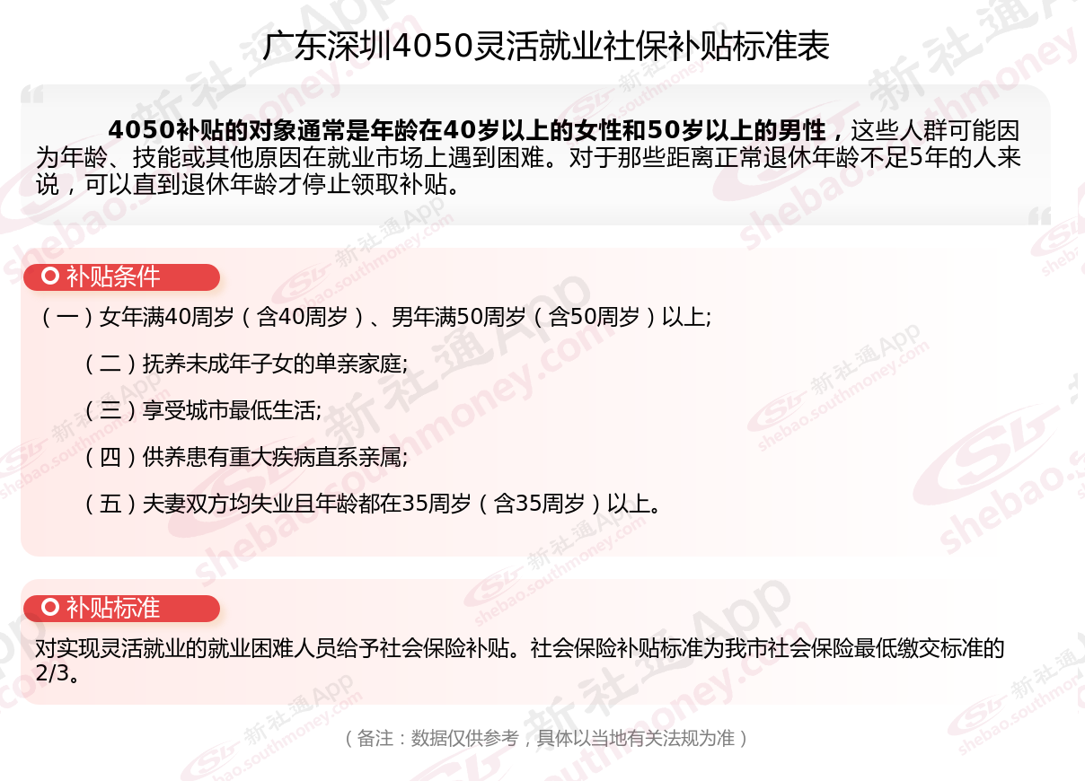 一、2023-2024年广东深圳4050社保补贴标准及条件是多少?