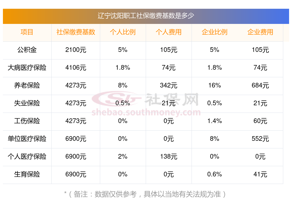 辽宁沈阳的社保缴费情况,依据2025年最新的缴费标准,我们可以详细地进行如下说明。这些标准是根据新社通app-社保缴费查询工具提供的数据整理得出的: