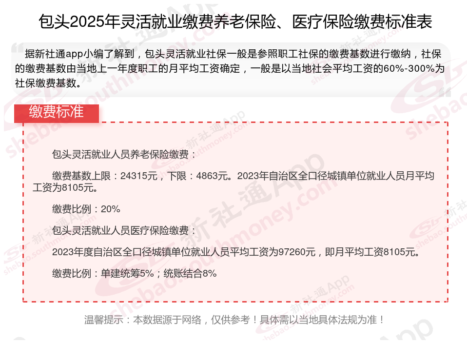 二、包头2025年灵活就业社保缴费基数及比例最新消息