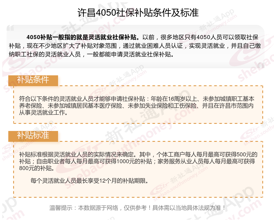 二、2025年许昌4050社保补贴标准及条件是什么?