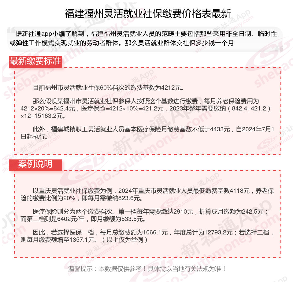 以上就是福建福州灵活就业社保缴费的全部内容,数据及内容供参考!希望对你有帮助,欢迎关注新社通解锁更多社保专业资讯。