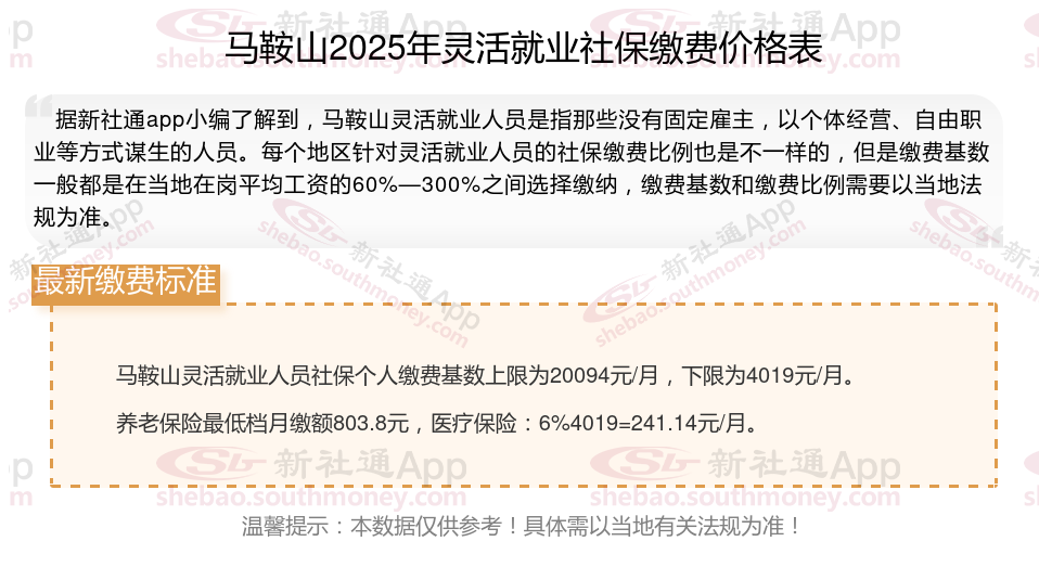 2025年马鞍山灵活就业人员社保需要交多少钱?2025灵活就业社保缴费标准的调整,既体现了法规的连续性,又适应了经济社会发展的要求。灵活就业人员应根据自身情况,合理选择缴费基数和缴费比例,确保自身权益得到充分保证。接下来随新社通APP小编一起来看看。