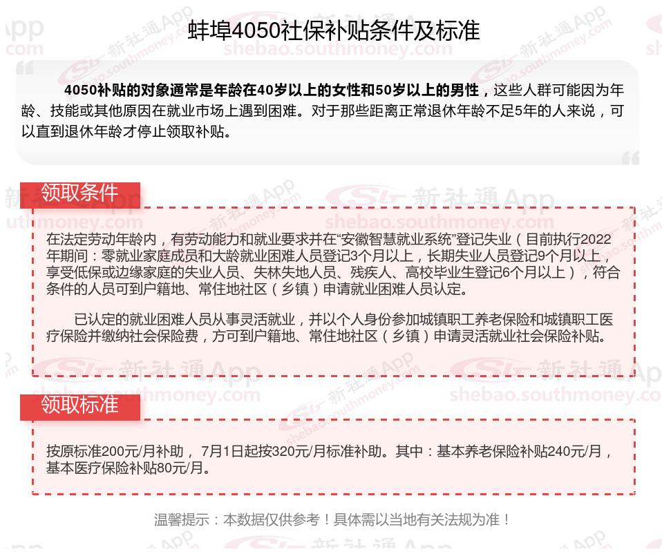 二、2025年蚌埠4050社保补贴标准(蚌埠4050灵活就业人员补贴标准是多少钱?蚌埠2025年4050补贴新规能领多少钱?)