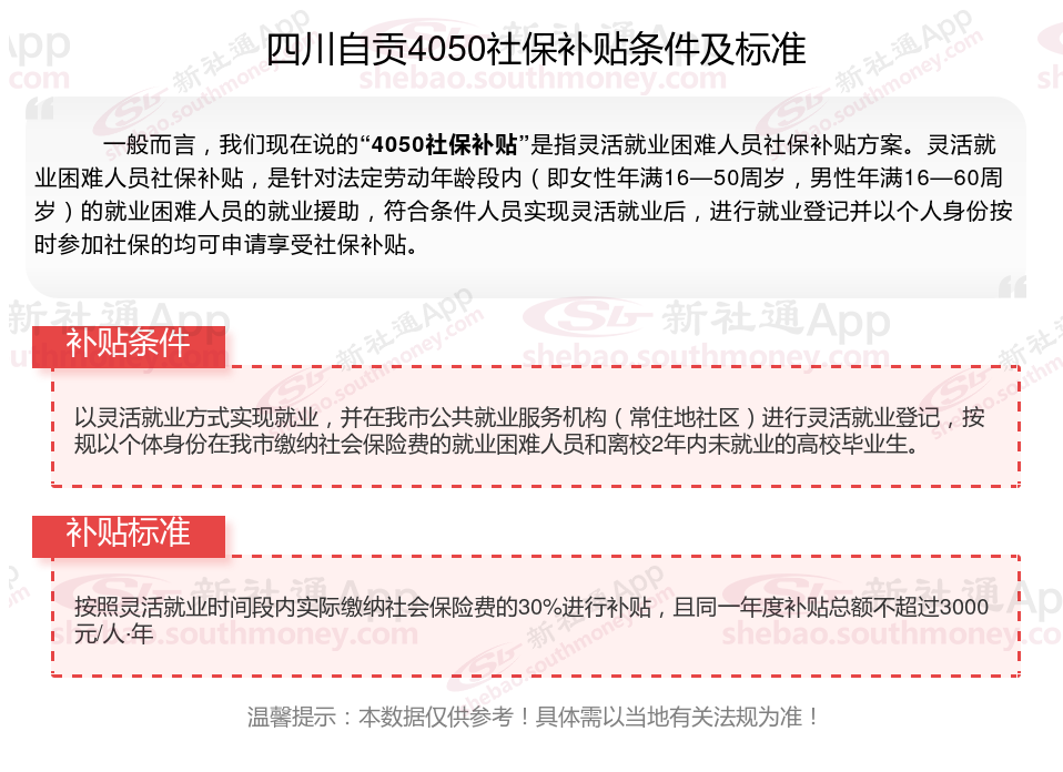 一、2025年四川自贡4050社保补贴标准及条件是多少?