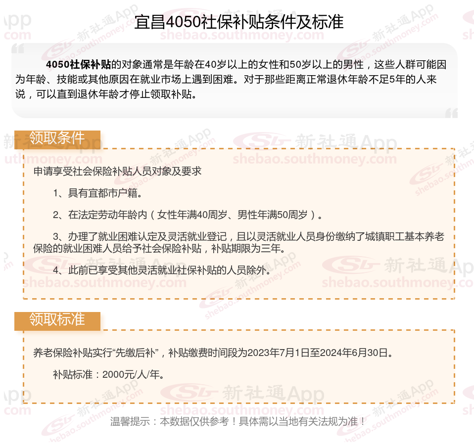 2025宜昌4050补贴主要针对的是年龄在40岁以上的女性和50岁以上的男性,这些人群通常因为年龄较大而面临就业困难。