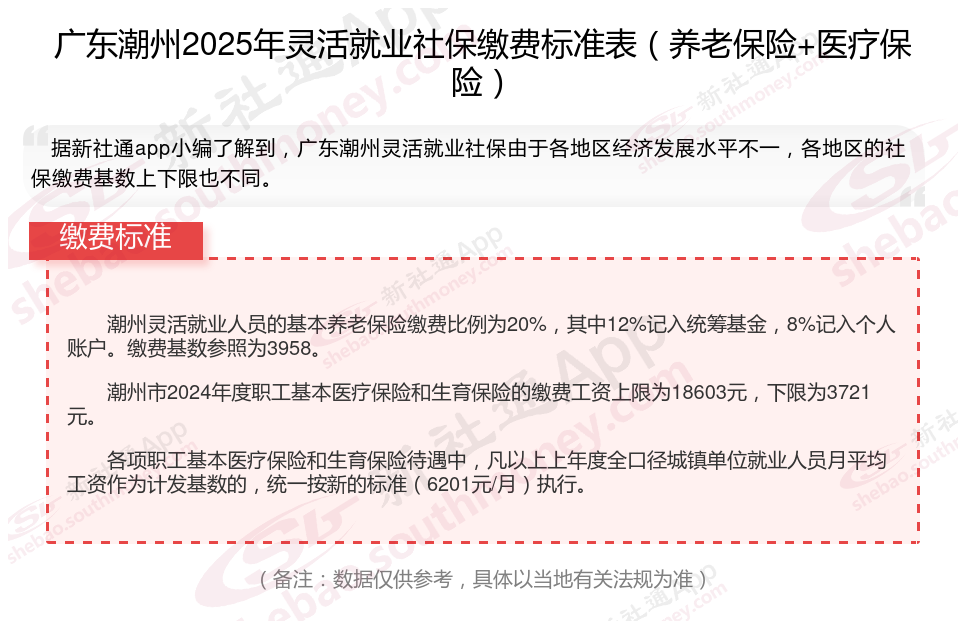 一、广东潮州灵活就业人员社会保险缴费档次表,2025年最新个人社保养老保险缴费标准一览