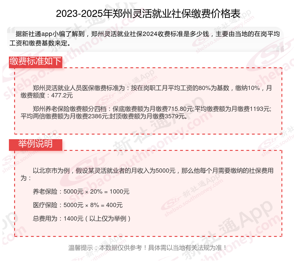 郑州灵活就业社保缴费标准,郑州社保缴费多少钱?下表是2024-2025年郑州社保费用明细参考,根据新社通app-社保缴费查询工具提供的最新数据如下: