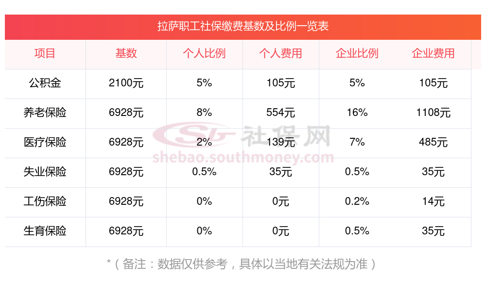 2025社保交多少钱?下表是2025年拉萨社保费用明细参考,新社通app-社保缴费查询工具提供的最新数据如下: