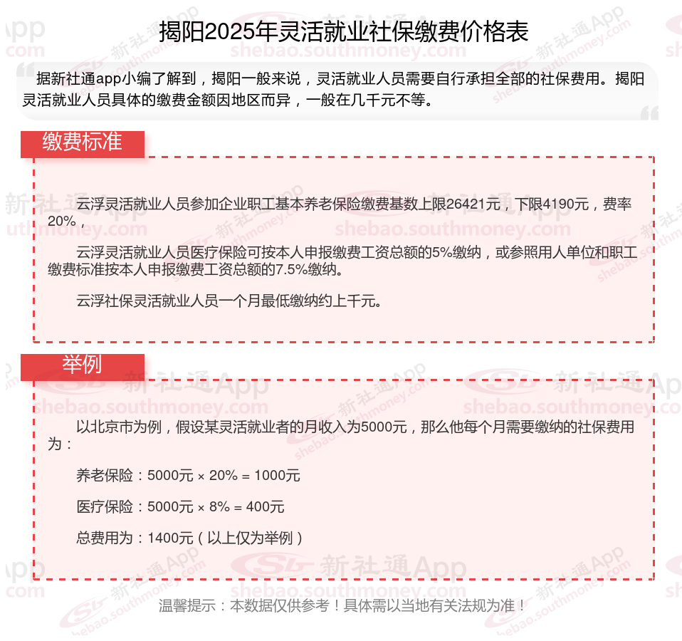 2025揭阳灵活就业社保缴费价格是多少钱一个月?根据新社通app-社保缴费查询工具提供的最新数据如下: