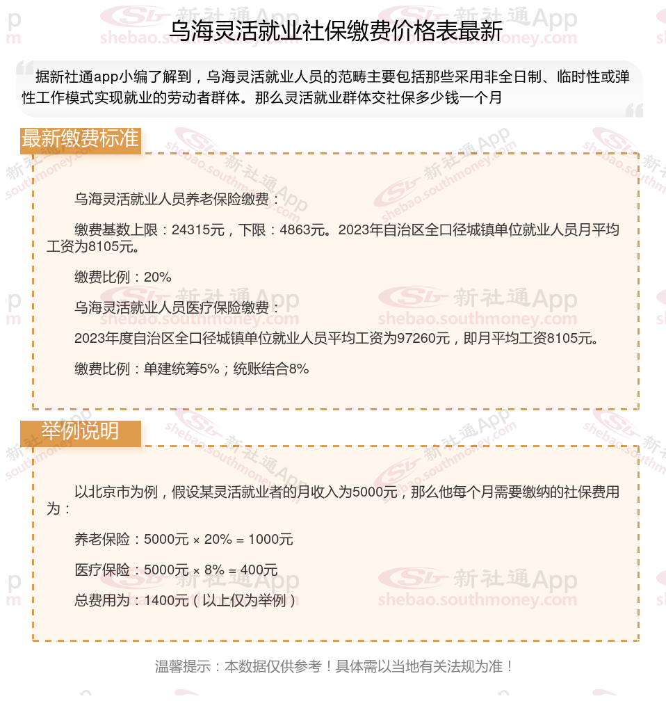 一、乌海灵活就业社保缴费基数及比例最新消息