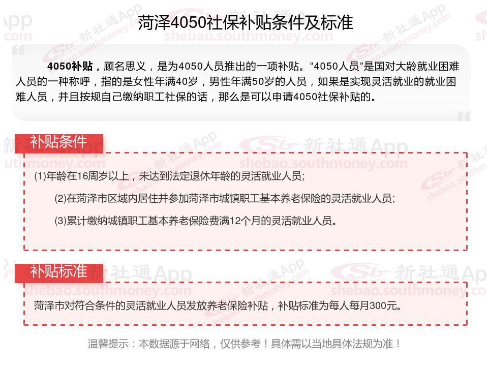 一、2023-2024年菏泽灵活就业4050社保补贴标准和条件是什么