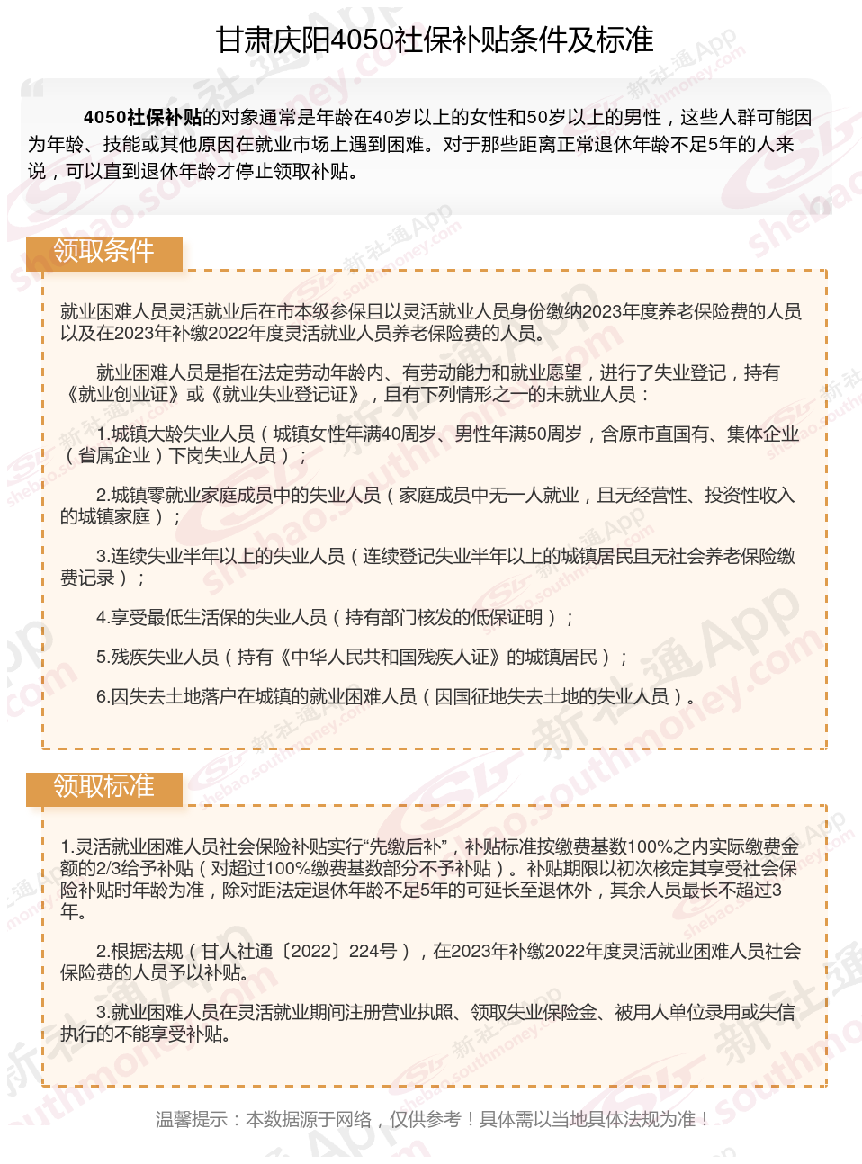 二、甘肃庆阳4050社保补贴新规2025年最新标准,2025年甘肃庆阳4050社保补贴条件是什么?