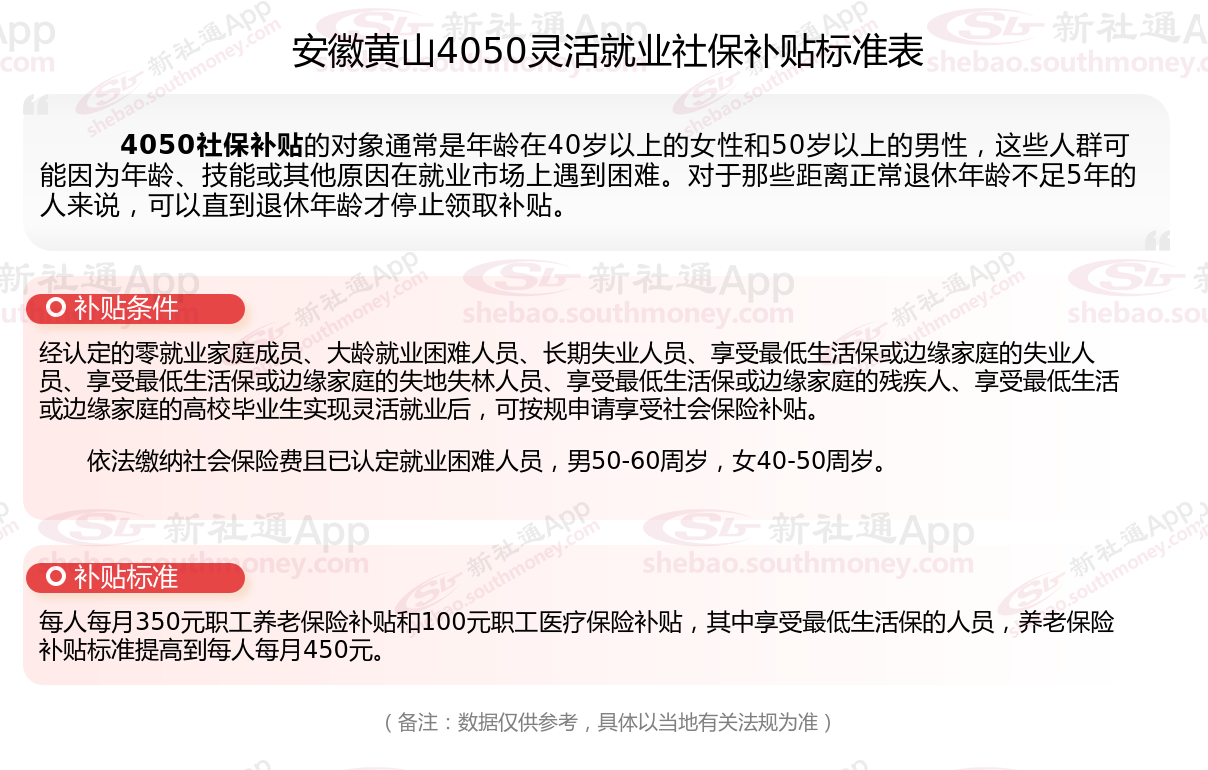 一、安徽黄山4050社保补贴标准及条件是多少?