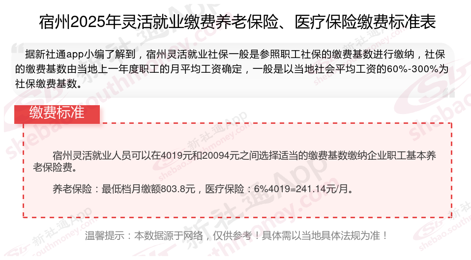 灵活就业人员交社保一个月多少钱?根据新社通app-社保缴费查询工具提供的2025社保缴费标准详情数据如下: