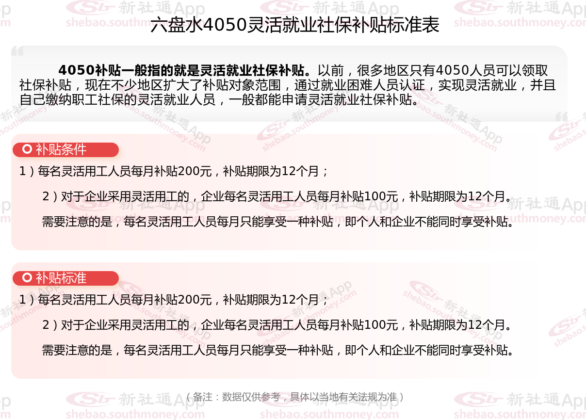 三、六盘水灵活就业4050社保补贴标准及条件是什么