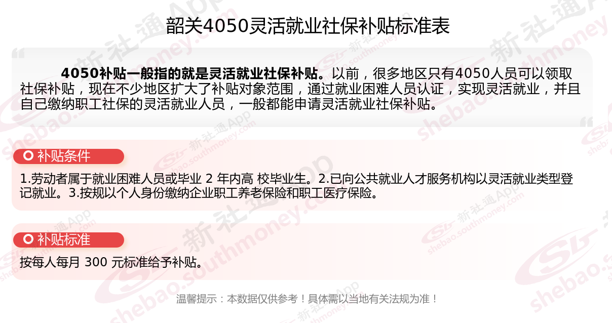 二、韶关4050社保补贴标准及条件2025年,最新如下