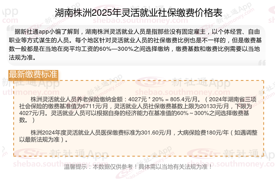 据新社通app数据显示,湖南株洲企业灵活就业养老保险的缴费基数为:4027元。