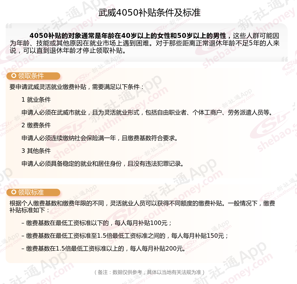 二、武威灵活就业4050社保补贴标准2025年(4050社保条件是什么)