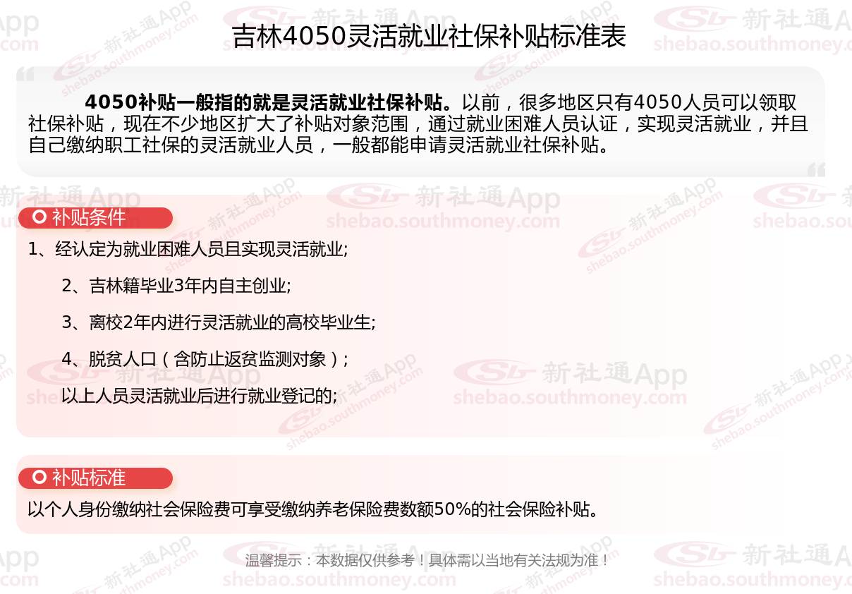 二、吉林4050社保补贴标准及条件(2025年最新)