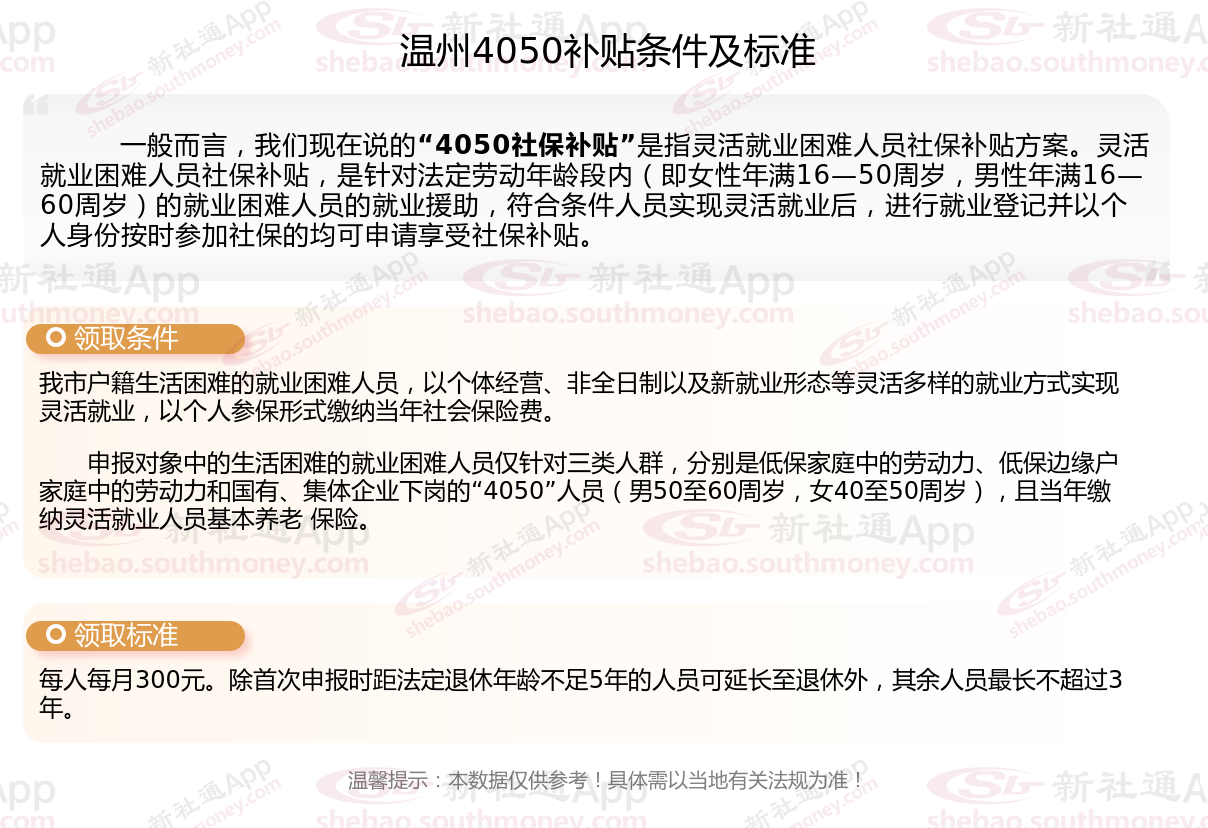 一、2023-2024年温州灵活就业4050社保补贴标准和条件是什么