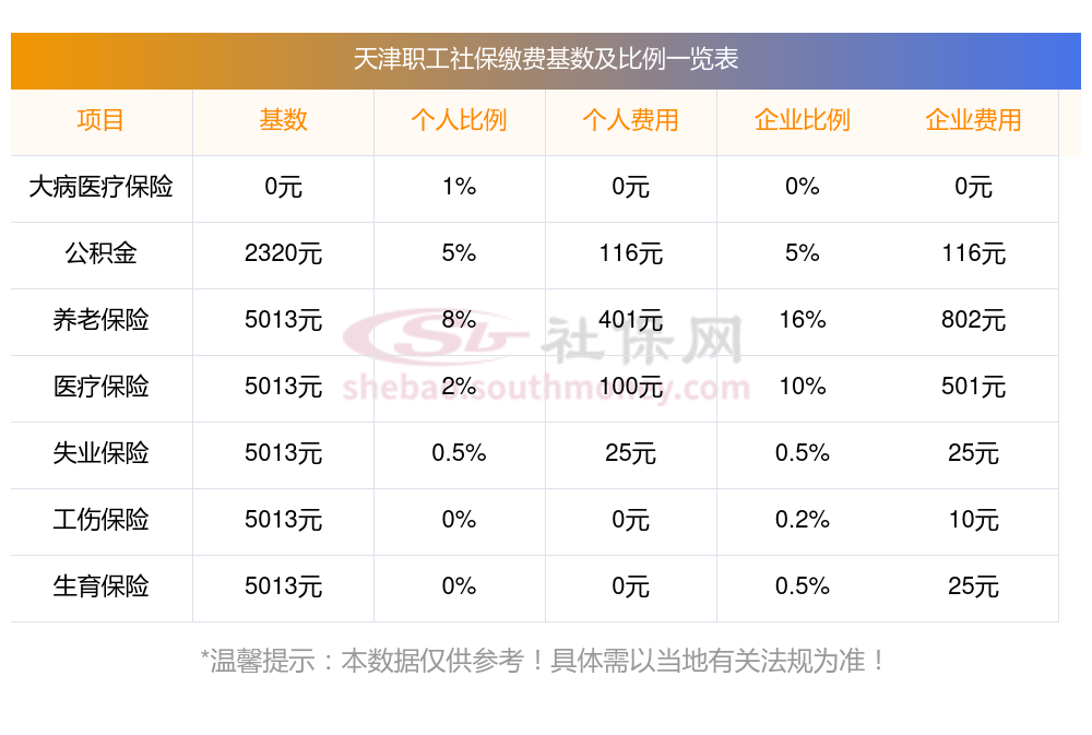 天津今年企业社会保险费缴费标准是多少?新社通app小编缴费查询工具提供的最新数据如下: