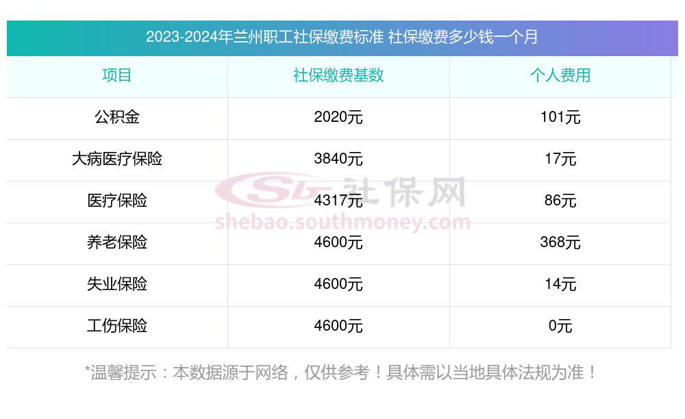 2025年兰州社保缴费价格,2025年兰州社保缴费多少钱?下表是2025年兰州社保费用明细参考,新社通app-社保缴费查询工具提供的最新数据如下: