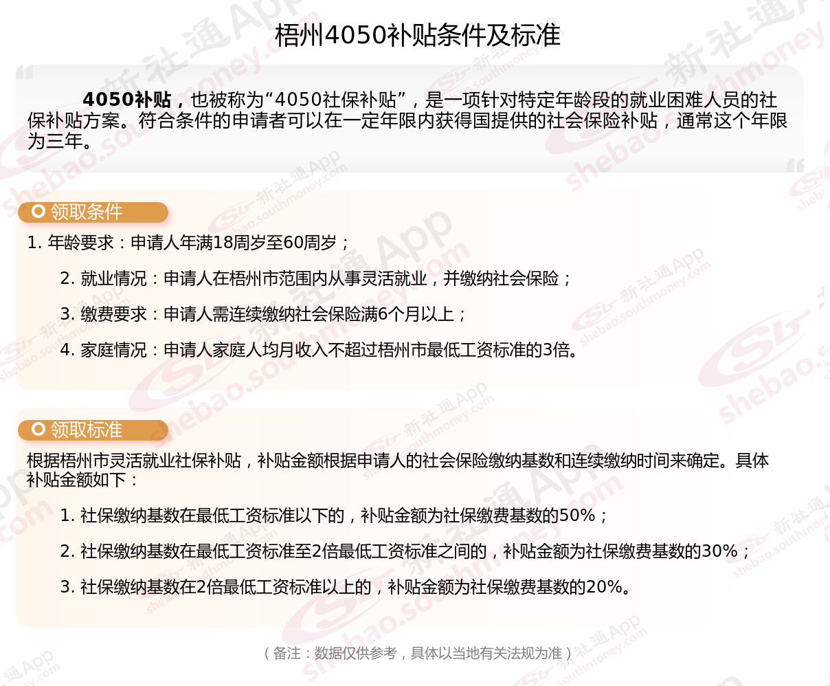 一、2023-2024年梧州灵活就业4050社保补贴标准和条件是什么
