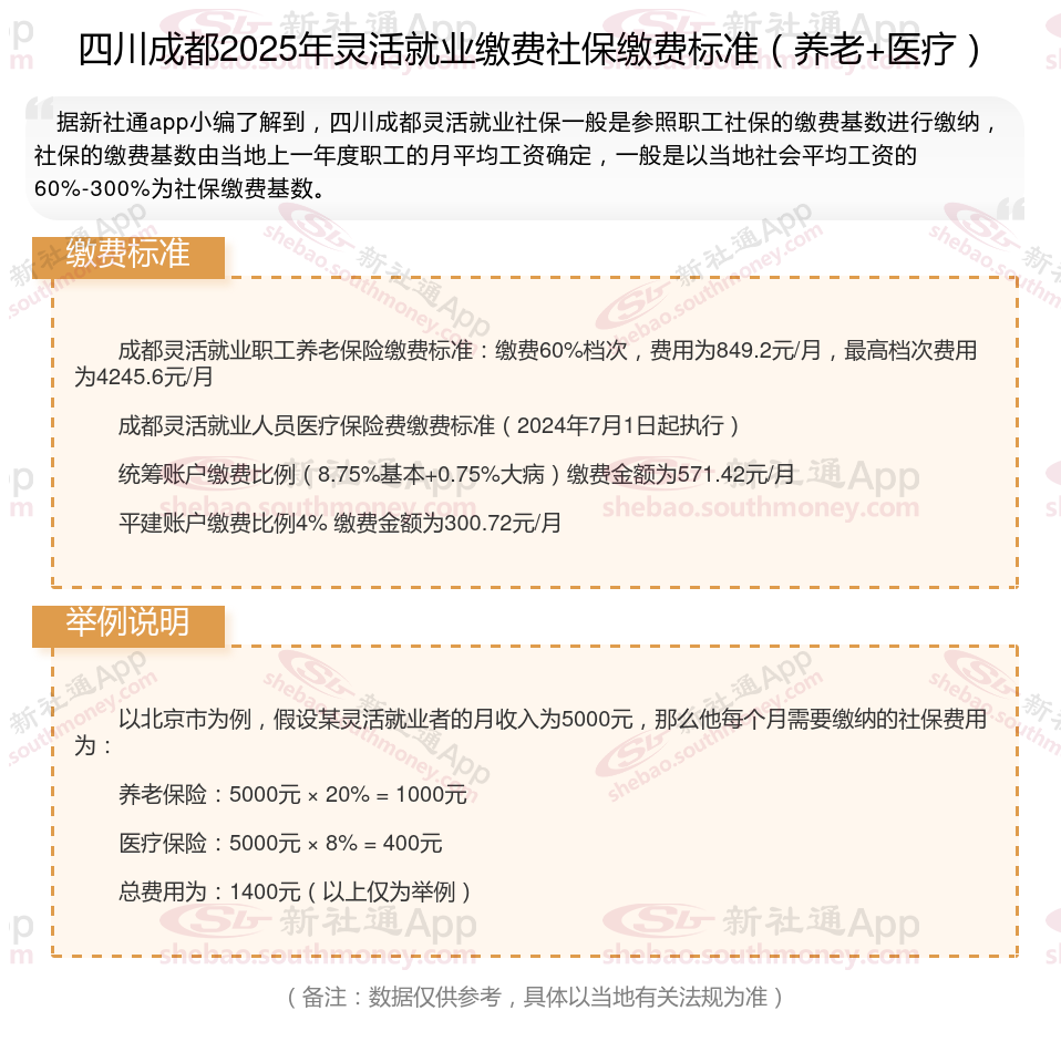 灵活就业,作为一种非传统的就业方式,近年来蓬勃发展。那么2025年四川成都灵活就业人员社保需要交多少钱?下面随新社通小编一起来看看。