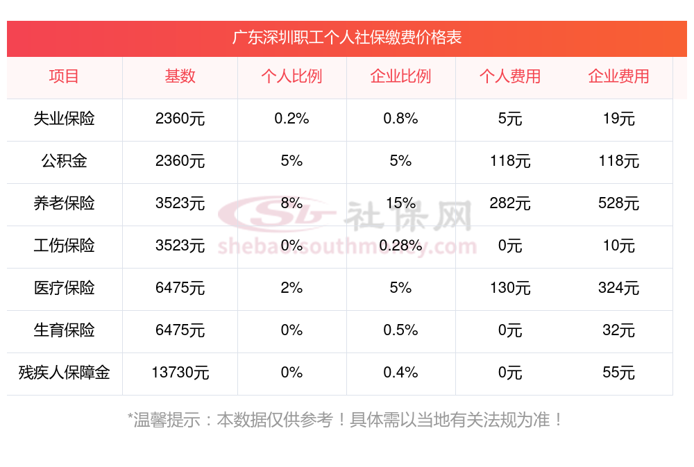 2025年社保多少钱一个月?下表是2024-2025年广东深圳社保费用明细参考,新社通app-社保缴费查询工具提供的最新数据如下: