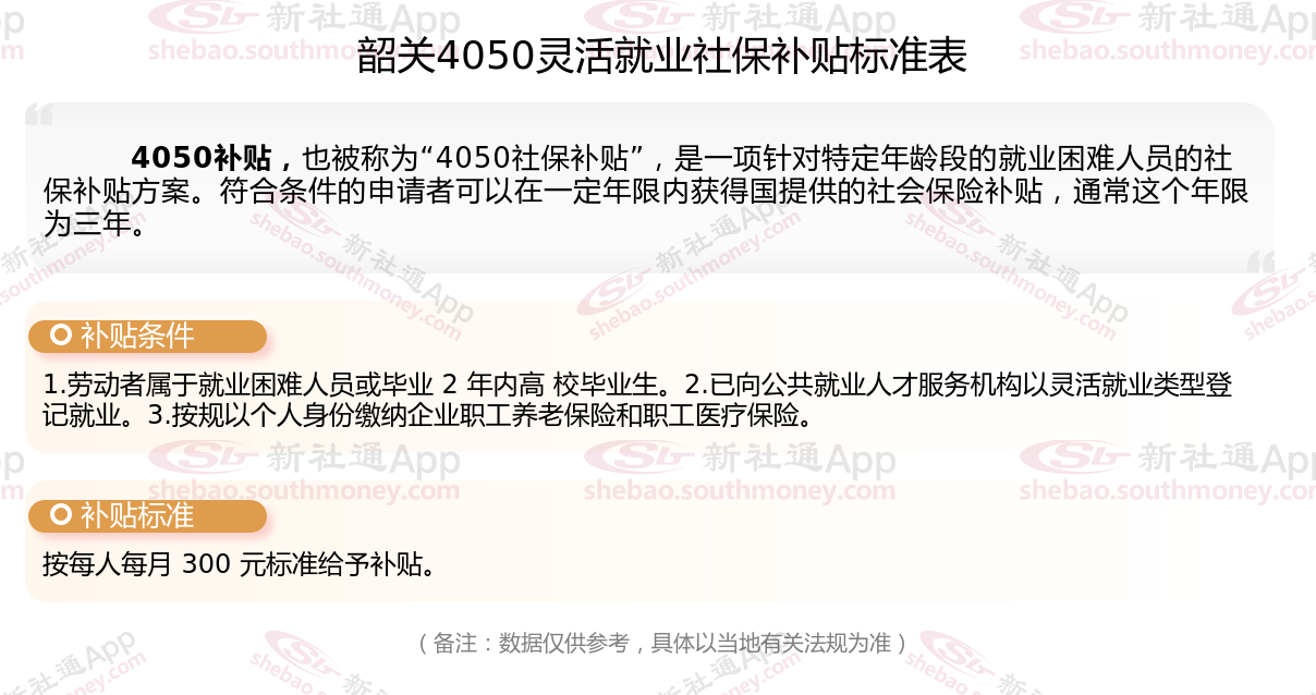 2025韶关灵活就业4050社保补贴是一项面向特定年龄段的就业困难人群的社会保险补贴。
