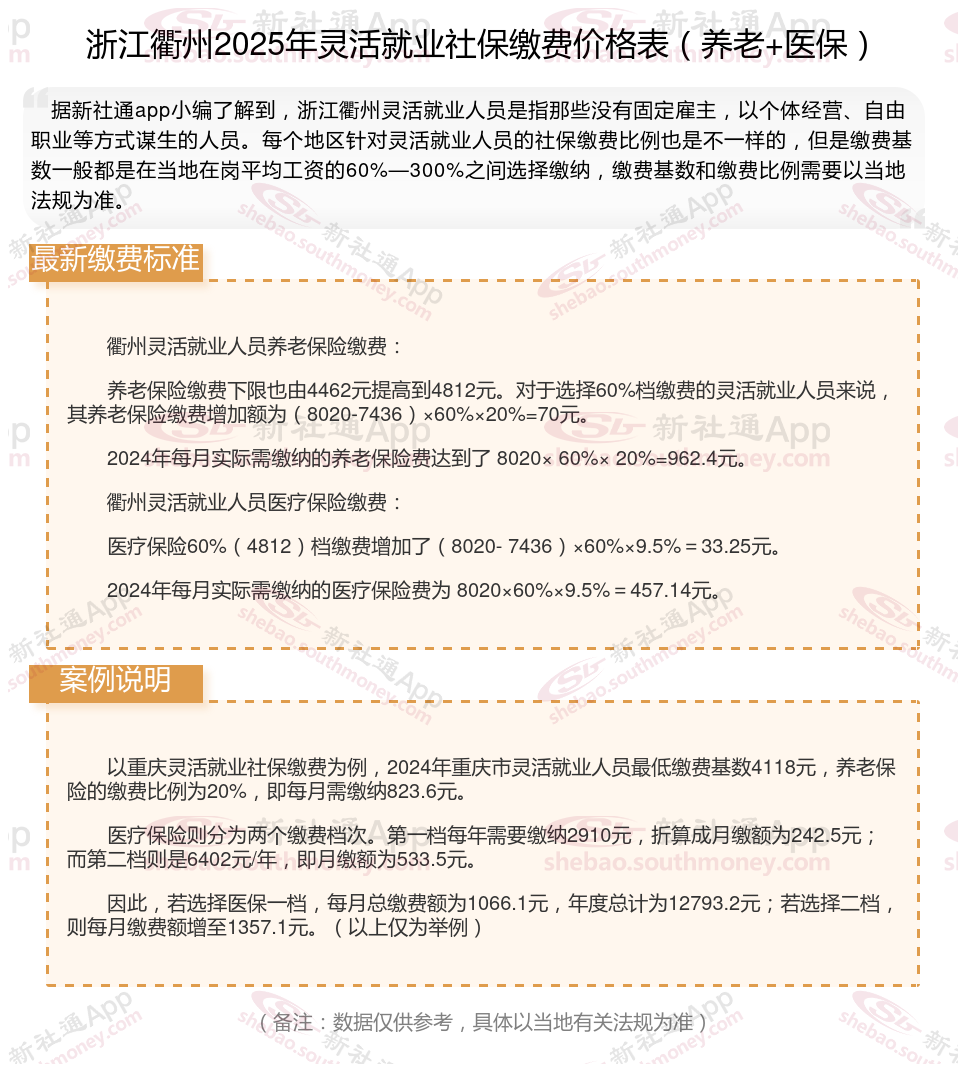 三、浙江衢州2025年灵活就业社保缴费基数及比例最新消息