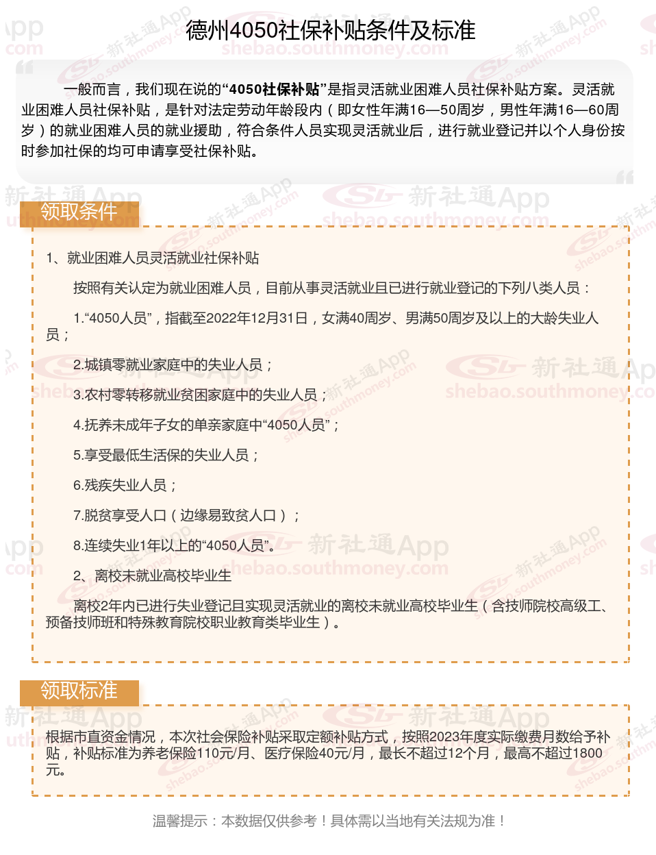 2025德州4050补贴主要针对的是年龄在40岁以上的女性和50岁以上的男性,这些人群通常因为年龄较大而面临就业困难。