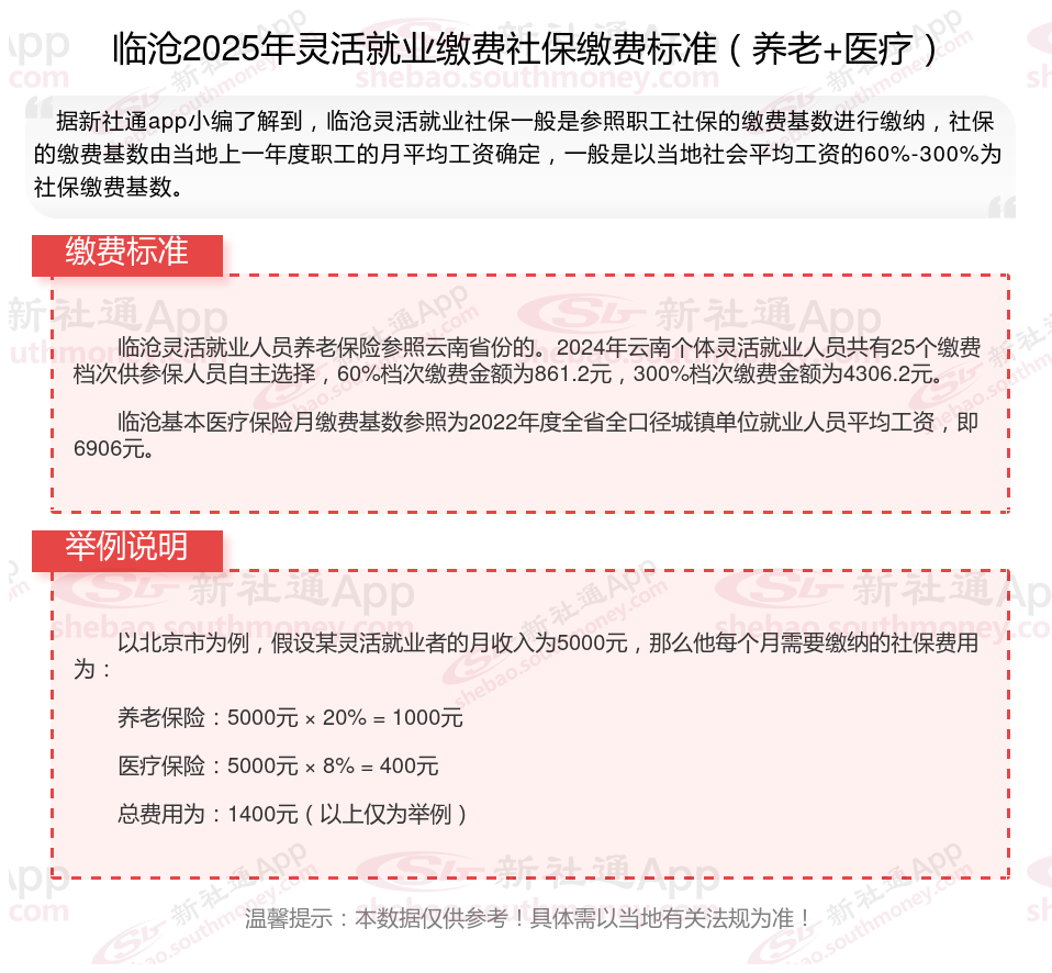 据新社通app数据显示,临沧企业灵活就业养老保险的缴费基数为:4306元。