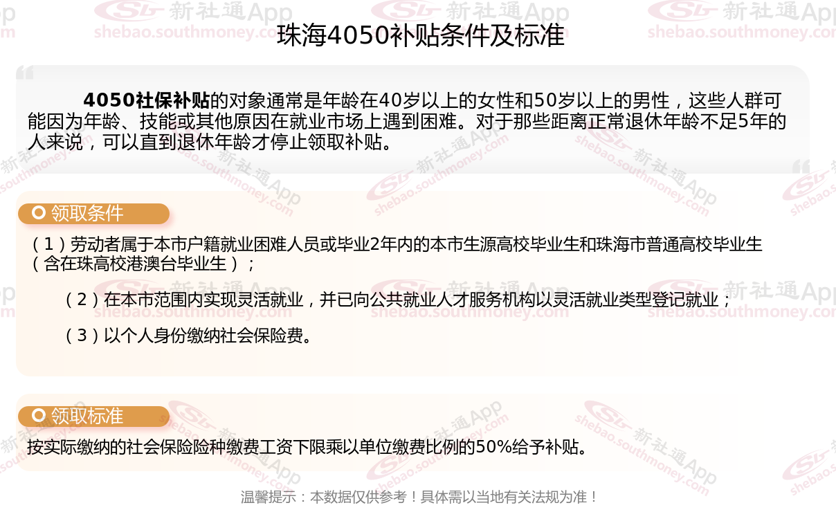 一、2023-2024年珠海4050社保补贴标准及条件是多少?