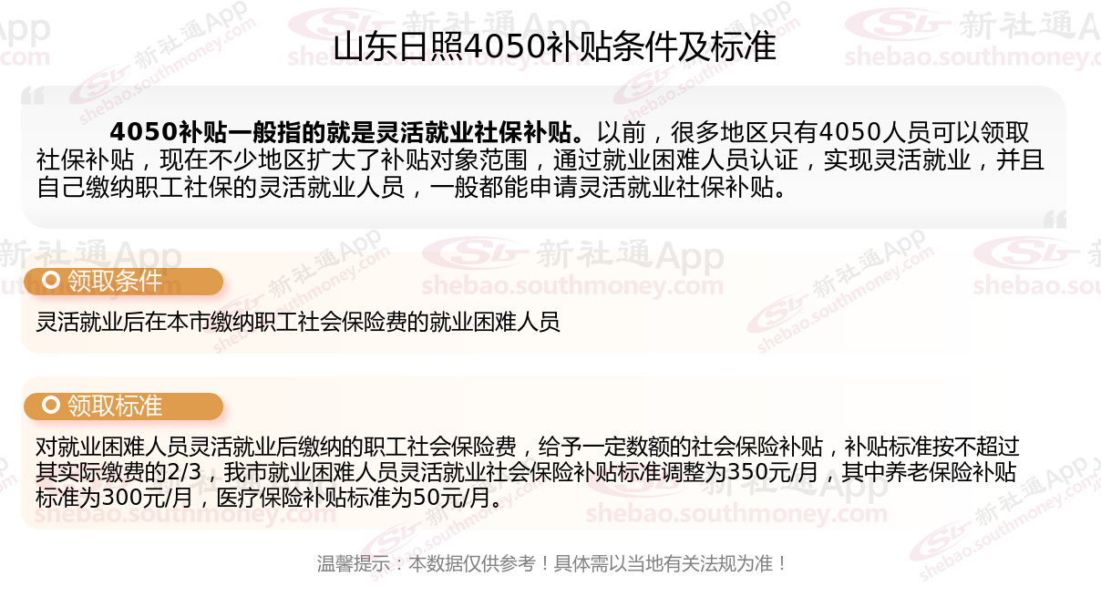 二、2025年山东日照4050社保补贴多少钱?4050社保补贴领取条件什么?