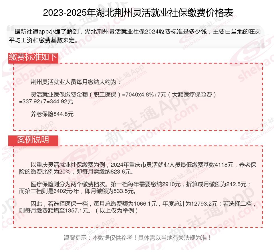 随着经济的发展和社会的进步,灵活就业人员越来越多,但是很多人不知道如何缴纳社保。本文将介绍2025年湖北荆州灵活就业人员社保缴费基数及如何缴纳社保,能领取多少钱,帮助大家更好地了解灵活就业社保,随着新社通APP小编一起了解湖北荆州灵活就业社保缴费最新资讯吧。