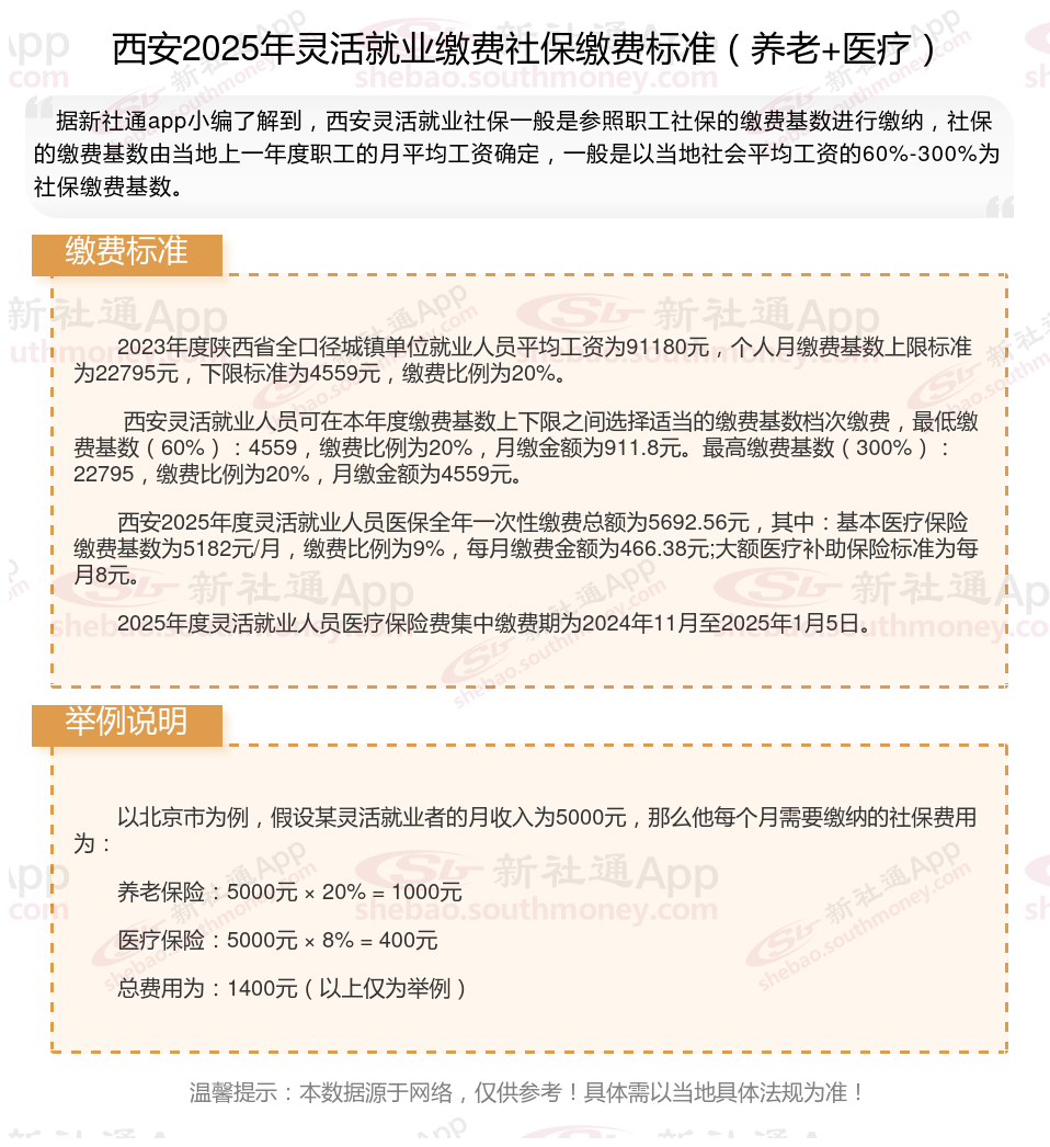 据新社通app数据显示,2024-2025年西安灵活就业人员养老保险的缴费标准: