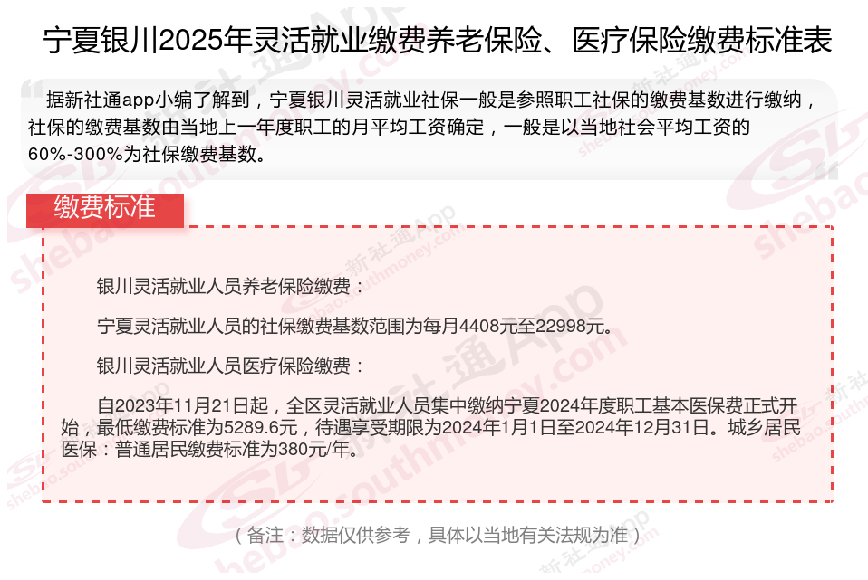 二、宁夏银川2024年灵活就业社保缴费基数、比例最新消息