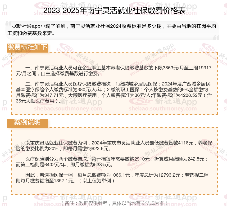 一、2025年南宁灵活就业社保缴费标准表 南宁灵活就业社保多少钱一个月?