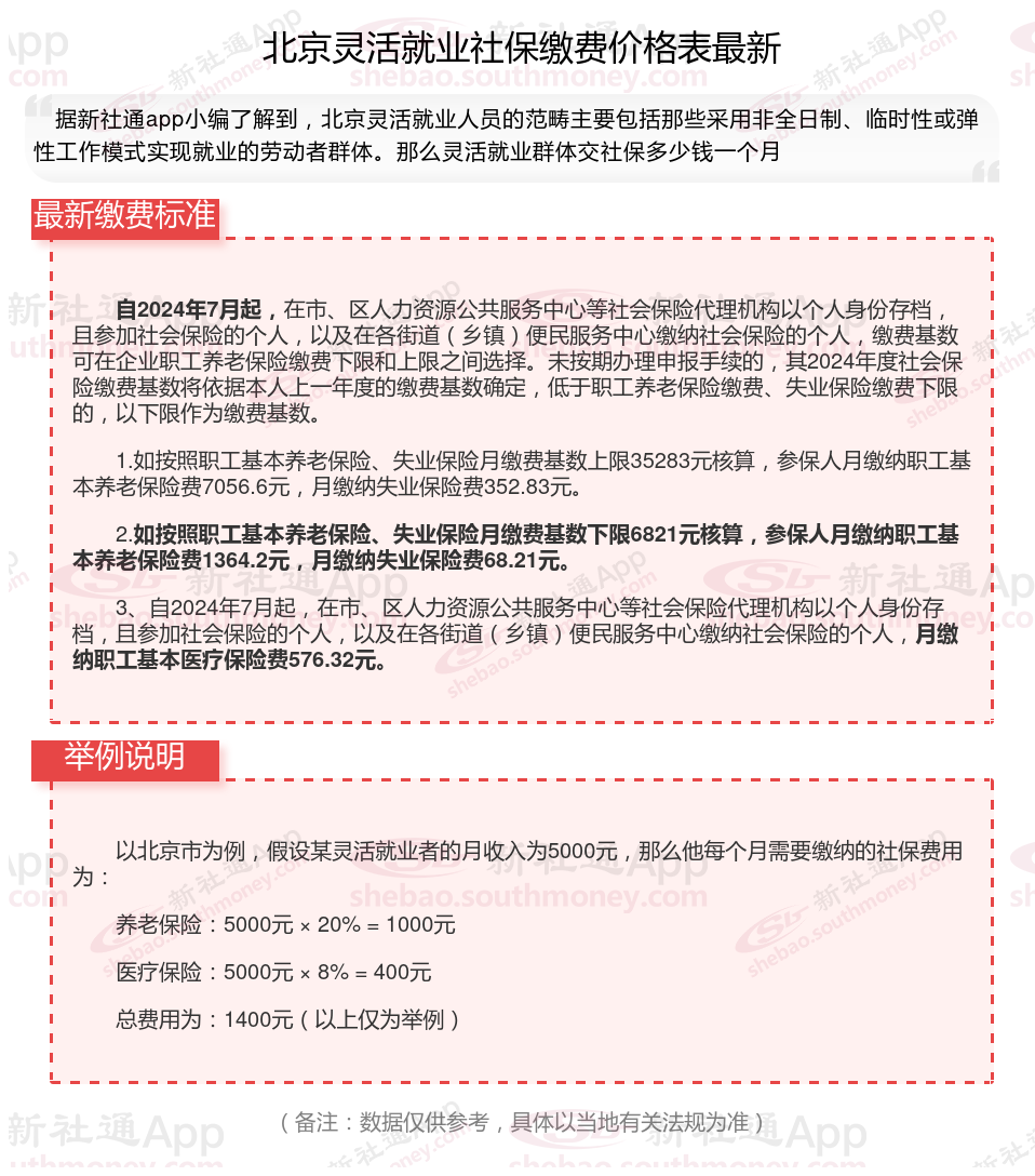 一、2025年北京灵活就业社保缴费标准公布啦 北京灵活就业社保多少钱一个月?